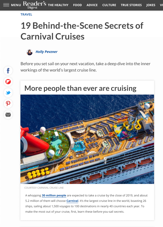 19 Behind-the-Scene Secrets of Carnival Cruises, Reader’s Digest